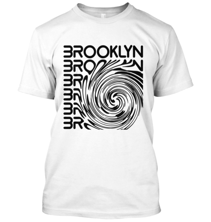 Quality T-shirt decorated with a colourful imprint ‘Brooklyn Swirl RB’. Available in forest green or white.