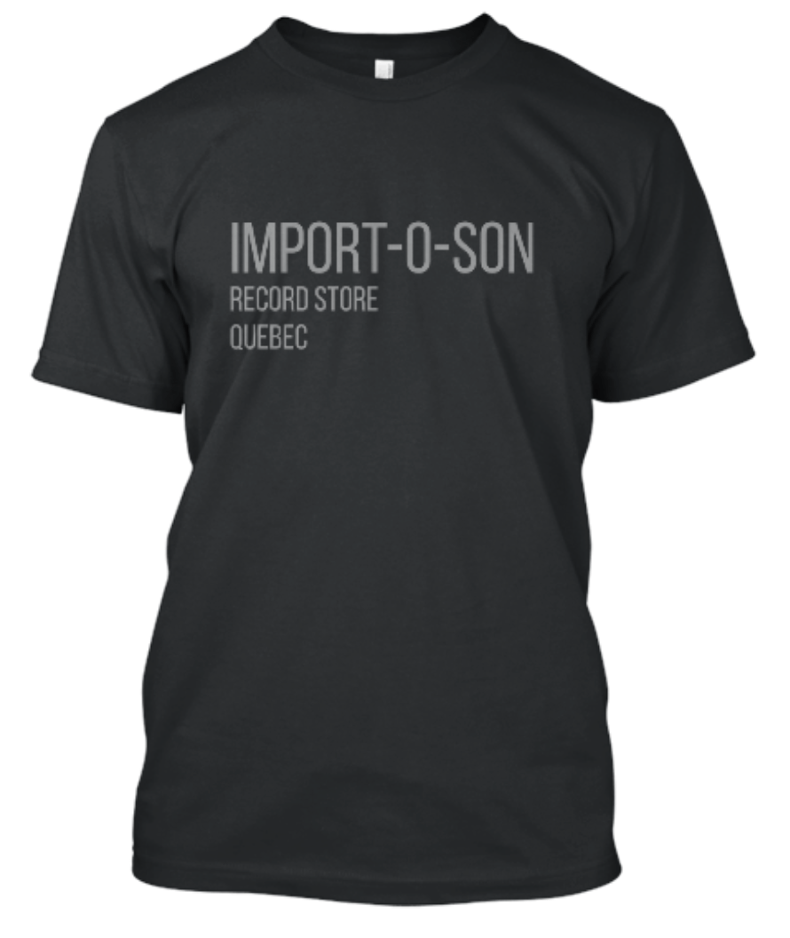 T-shirt with Import-O-Son logo. This record store in Quebec City was established over 30 years ago.